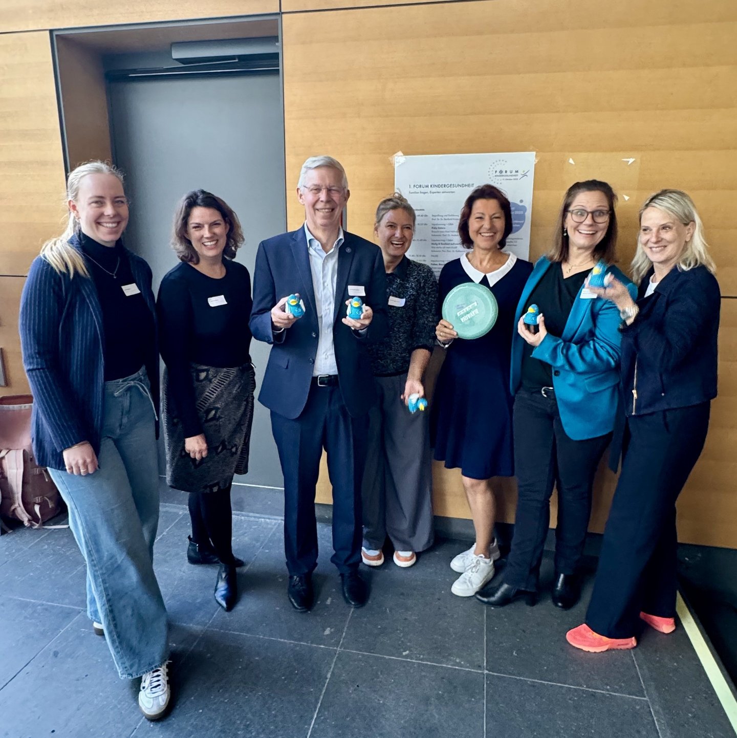 Foto: von links nach rechts: Clara Englisch, Roxane Bechtold (beide: Stiftung Kindergesundheit), Prof. Dr. Berthold Koletzko (Vorsitzender des Stiftungsrates), Giulia Roggenkamp (Generalsekretärin der Stiftung), Prof. Dr. Andrea Maier-Nöth (Professorin für Gesundheitspsychologie und Kinderernährung), Priv.-Doz. Dr. Katharina Bühren (Ärztliche Direktorin kbo-Heckscher-Klinikum und Vorstandsmitglied der Stiftung), Manja Zimmermann (Bayer. Staatsministerium für Gesundheit) - Copyright: Stiftung Kindergesundheit